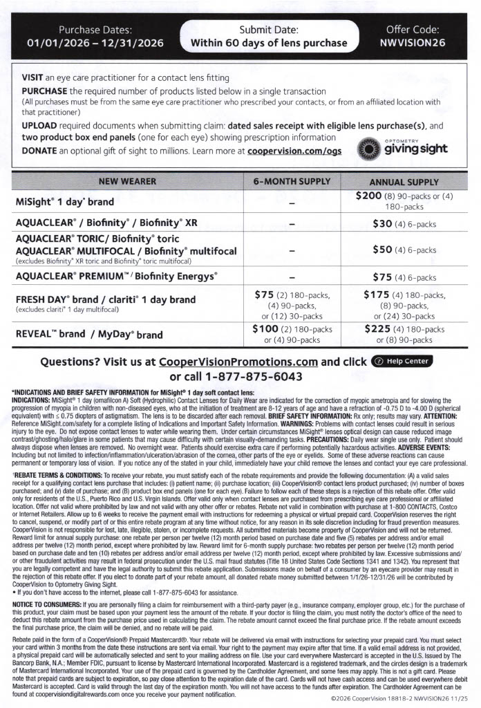 CooperVision New Wearer Rewards (Up to $225)